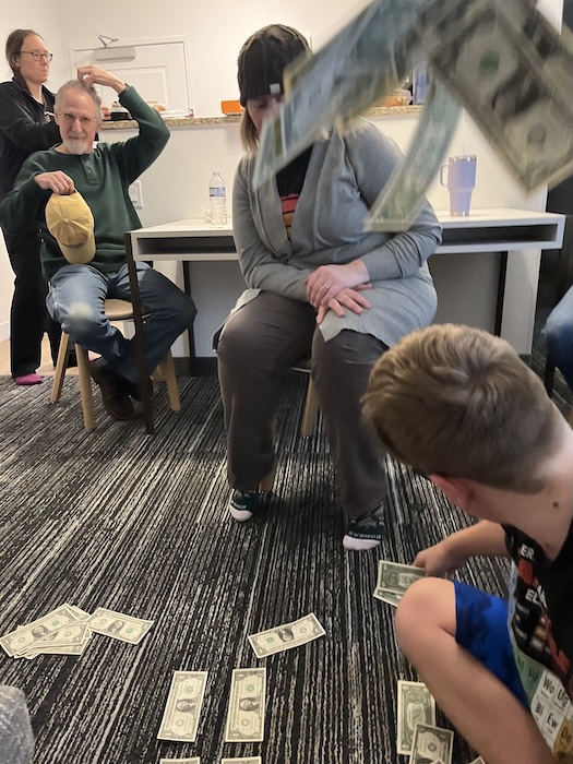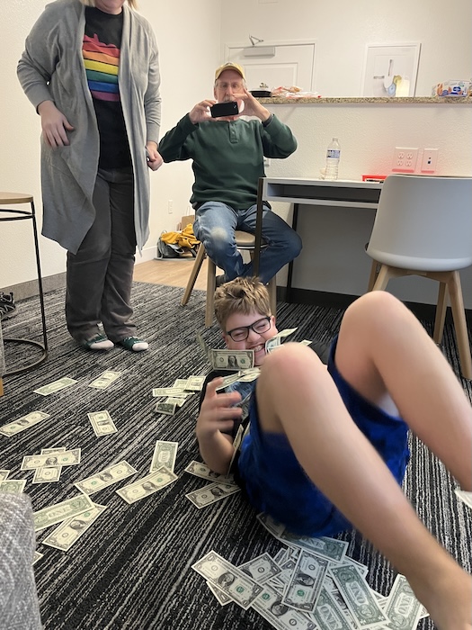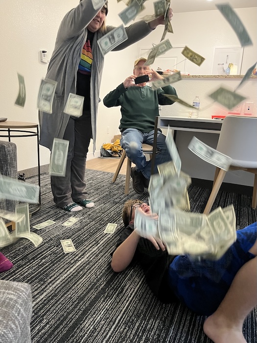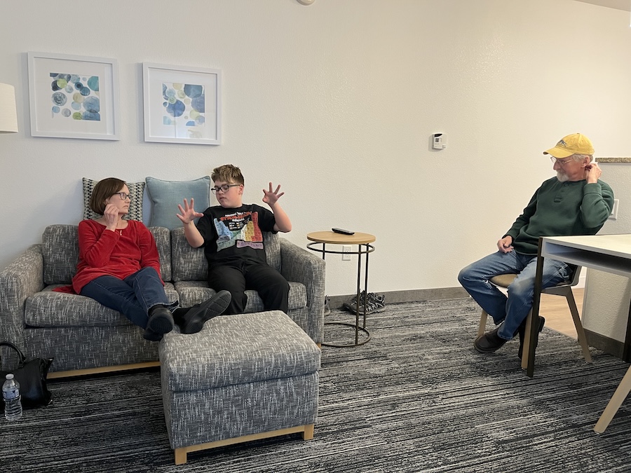 Back at the hotel, GG and Grandpa Kevin were there, and later Josh, Kara, and Freya came over. We had Little Caesar's pizza at my request, and Kara made a chocolate cake which was delicious!