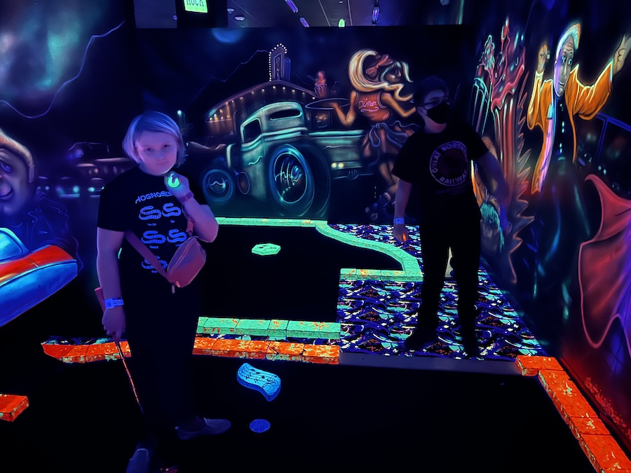 And then we played mini golf again - another 18 holes. But this was in blacklight!
