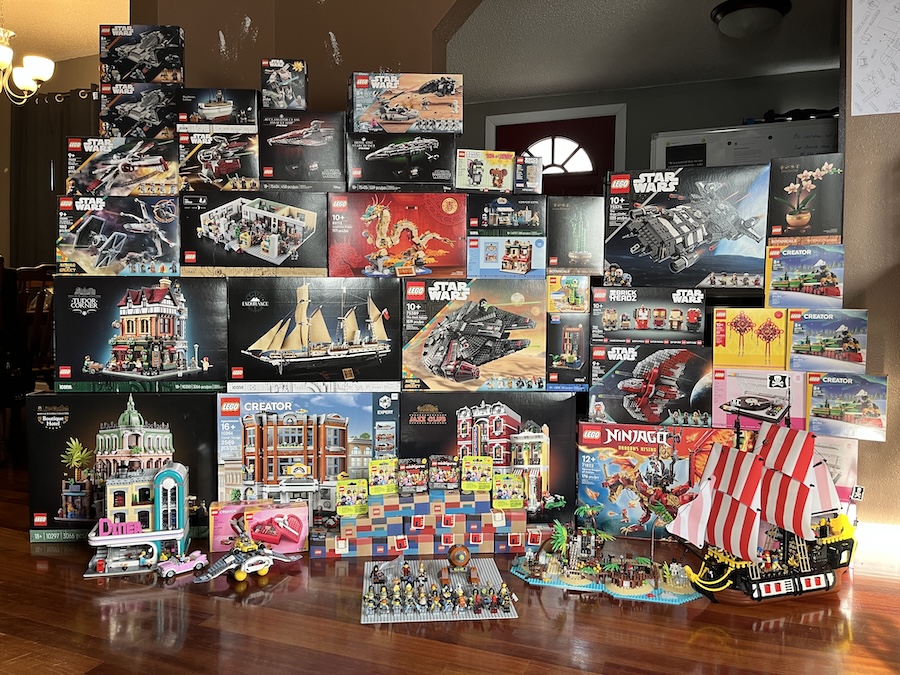 We had a lot to unpack when we got home. But before all the LEGO got put away, Dad insisted we make The Great Wall of LEGO Boxes (see the wall from last year and the year before). Now, this is all the boxes from LEGO Season, which is defined as Dad's birthday through my birthday. So it is all the LEGO we added to our collection. And yes, as usual we went a little overboard.