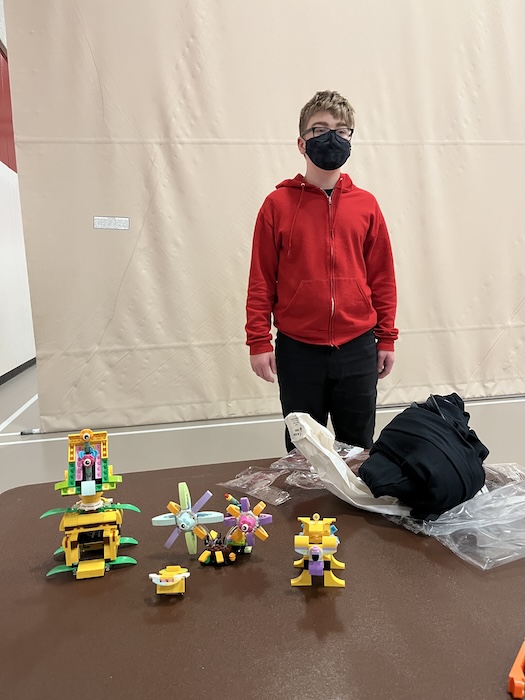 Mom was still feeling sick, so she is in quarantine. Dad and I had to go without her to the LEGO contest we signed up for. Jonathan and his family were there, too. Jonathan did the solo competition, and Dad and I were a team.