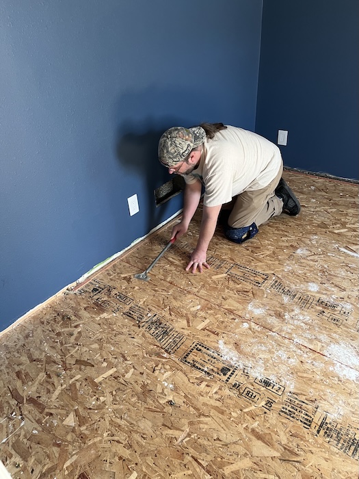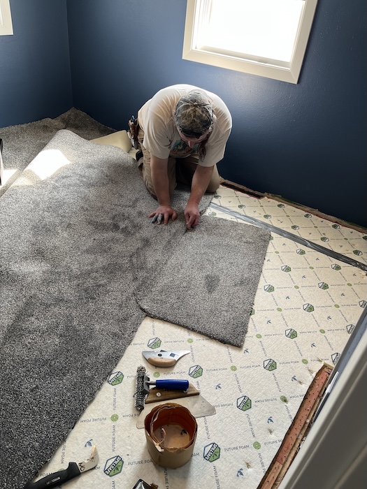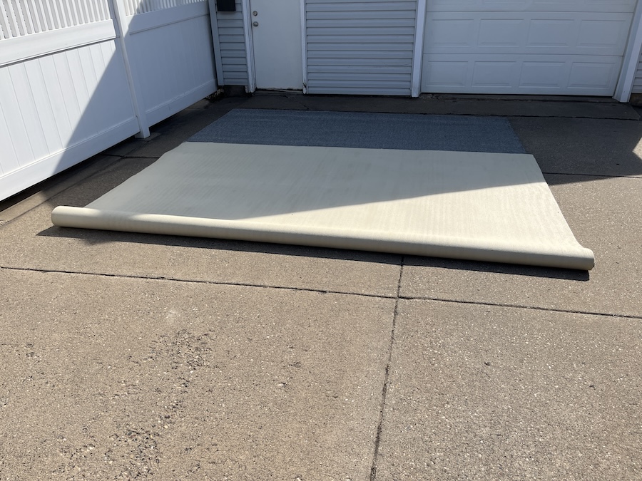 No, we are not carpeting the driveway - it was just easier to cut it down to size out here. Good thing it wasn't raining.
