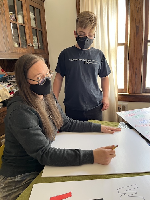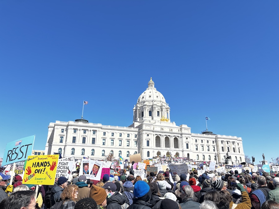 Saturday morning we drove up to Freya's house. What was going to be just a visit with Zelda, the new puppy, turned into a full weekend. We decided to go to the Hands Off protest at the capitol.