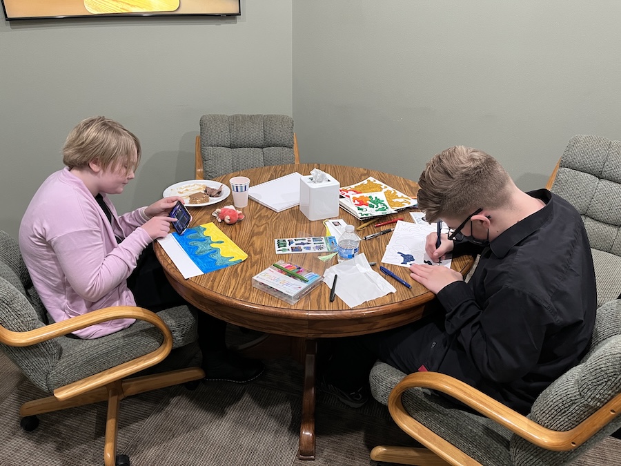 On Monday we went to Great-Grandma Joan's funeral. We got up early and drove for a few hours to get there. I talked to Jacob and Tanner for a little bit, and I talked to Ross about history. Once Freya and Kara arrived, I hung out with Freya. We watched the ceremony from the family room, where it was quieter. I'm not a fan of loud organ music or group singing. Mom and Dad talked to people and sat in the service. After the food, we went out to the cemetery, where it was windy, just like every time we have been out there (although not as cold as Great-grandpa Eldon's funeral). We only got a couple of pictures because Mom and Dad were too busy talking.