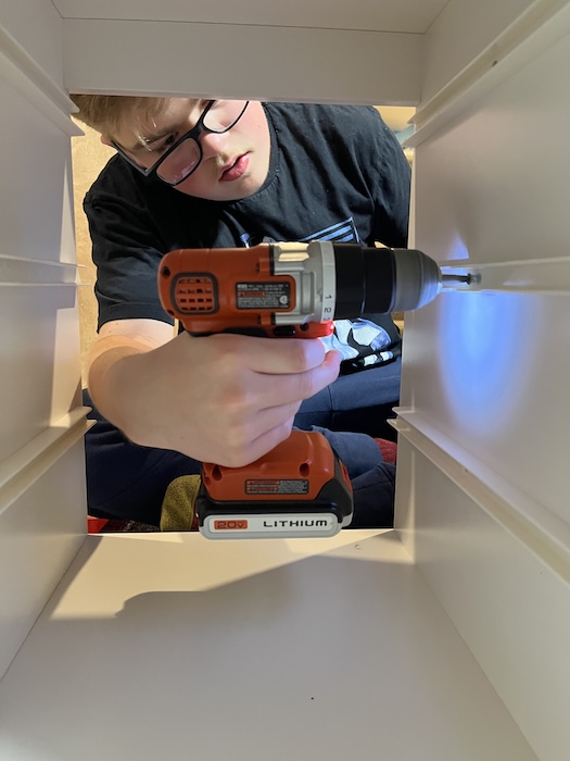 Putting the screws in to finish it up.