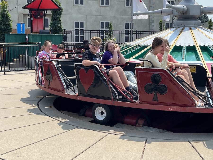 Most of this week was pretty normal - finishing up school with Mom and Dad, going for bike rides, and playing with LEGO. We had recess one day, with Jonathan at the creek. And I had an orthodontist appointment - probably going to get my braces off by the end of the year! We also delivered some rhubarb treats to GG and Grandpa Kevin. But the big excitement was on Sunday: we went to the amusement park with Freya and Josh. Mom came along, but she went to see Great-grandma Muriel while we were going on rides.