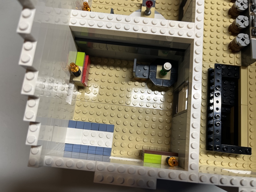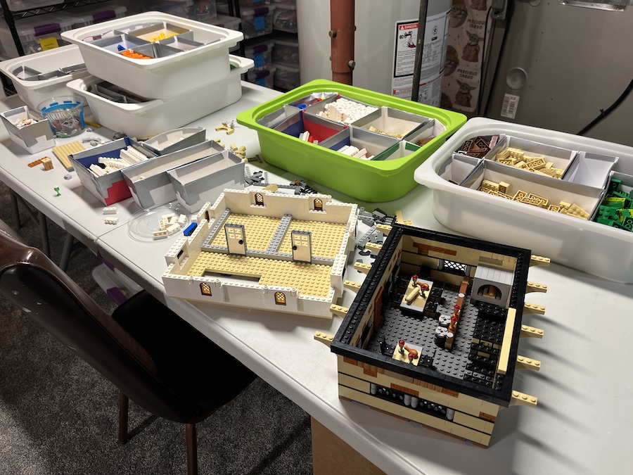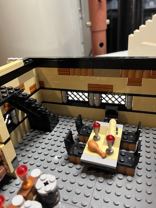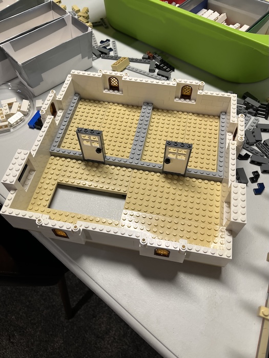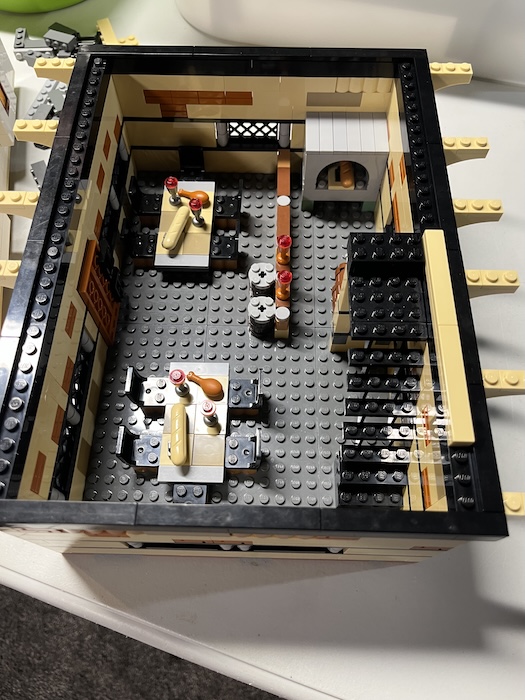 On Saturday Dad came down to help with some building. He made a version of an inn, but we decided to try again and took it apart before bed. Sunday morning we tried again. And I am happy with the results.