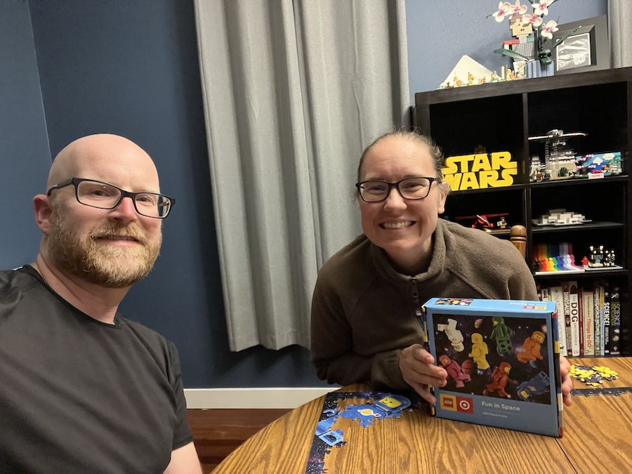 We stayed home for the weekend. I only left the house to go for walks with Dad. Otherwise, we played with LEGO in the basement and had some donuts. Oh, and Mom and Dad worked on another puzzle.