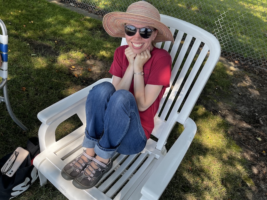 Caroline curled up in her chair.