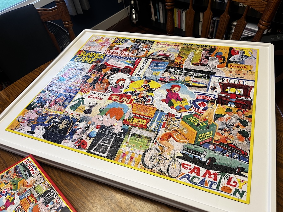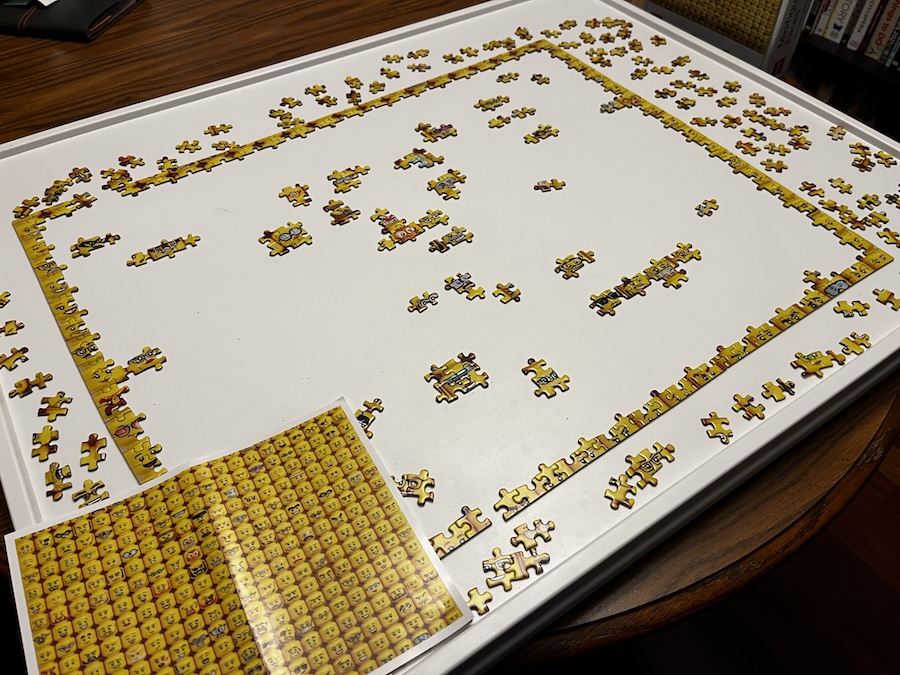 Mom got a new toy this week: a puzzle table. It spins and has trays for pieces - this way it is easy to pick the puzzle up and move it.