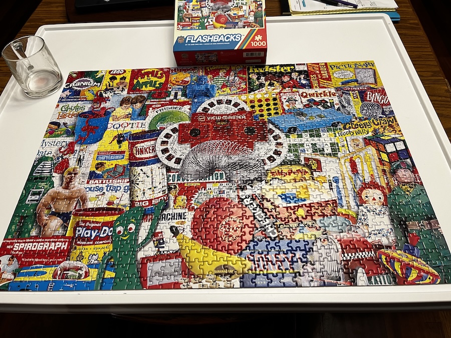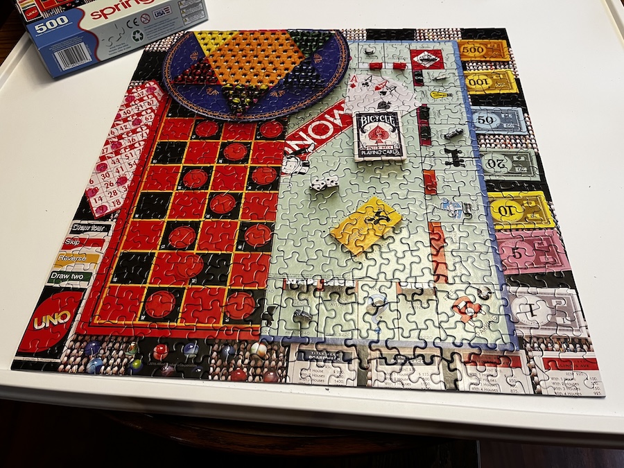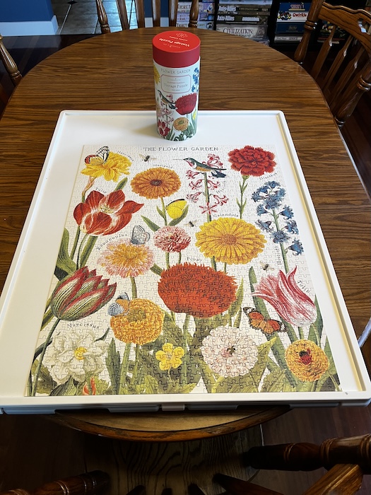Mom was still puzzling this week - here are her completed puzzles. Dad helped a litte on the one with the flowers.
