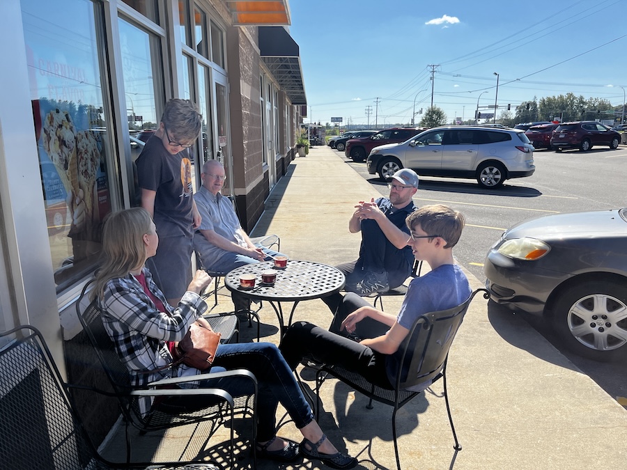 We had some other things to do in town, along with taking Lily home. I went to see the orthodontist, we went to the flag store, and we met Jonathan at BAM to fill the bag of free LEGO. Only three more of those to go. After filling the bag we went to a park for a picnic and then to Coldstone for some ice cream.