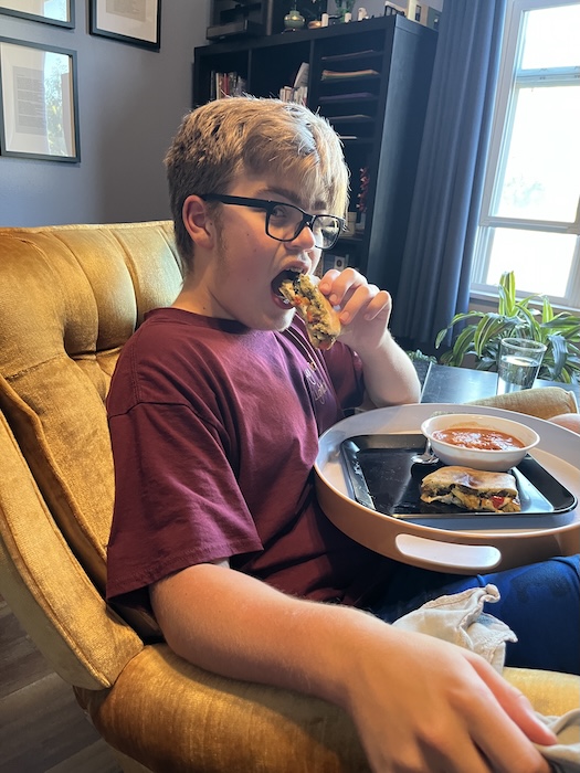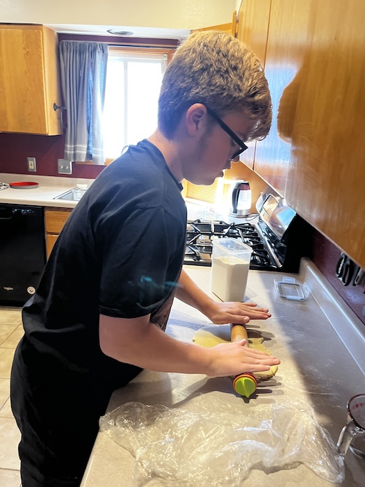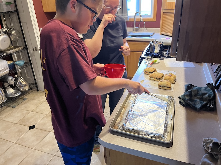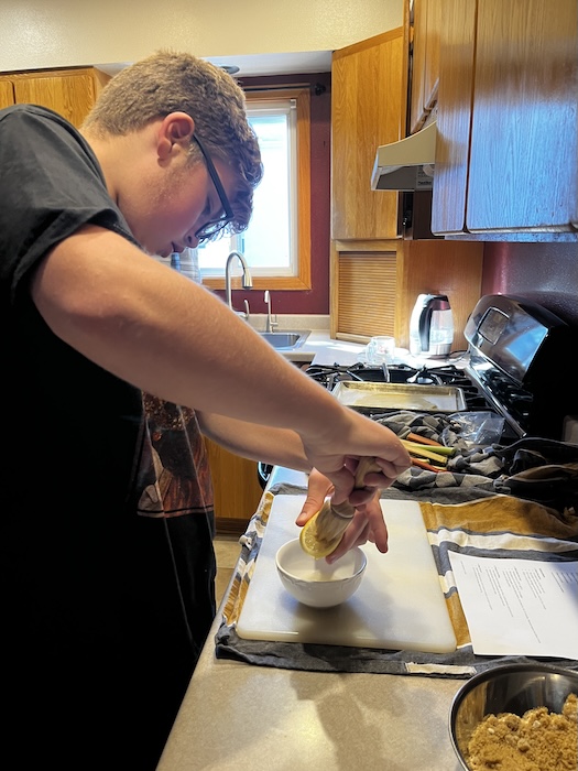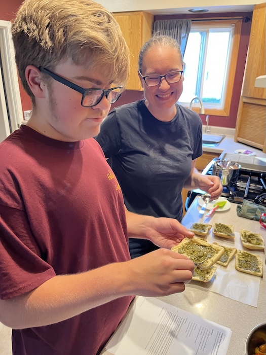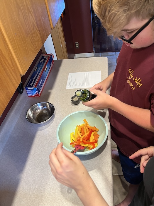 Sunday morning Dad and I went on a bike ride, then we worked on my paper about the Henry V movie. I continued to work on my paper while Dad mowed and cleaned up the car. Mom worked on getting school ready for the next couple of weeks. Then it was time for another food lab.