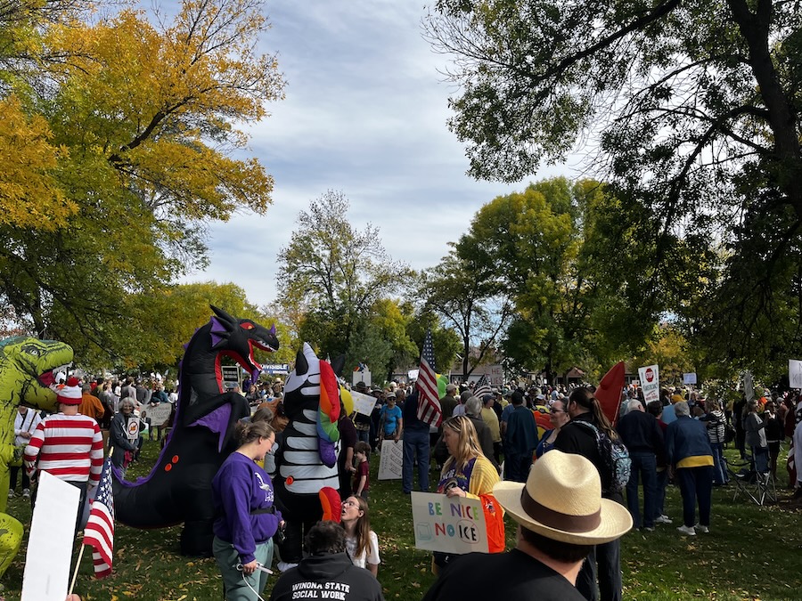 Saturday we went to the park for the protest. There were a lot of people there - an even bigger turnout than the last one.