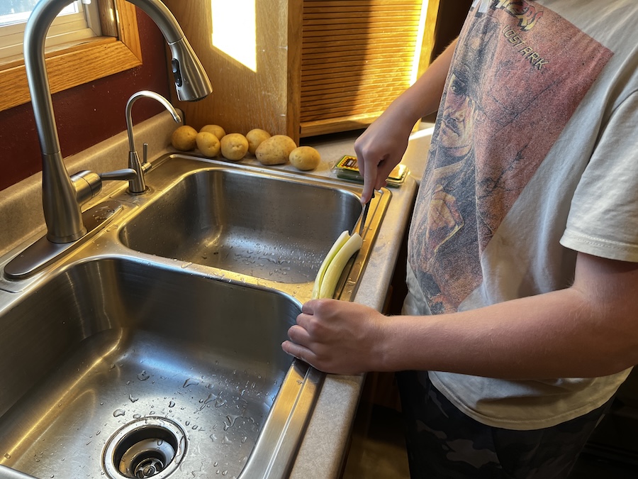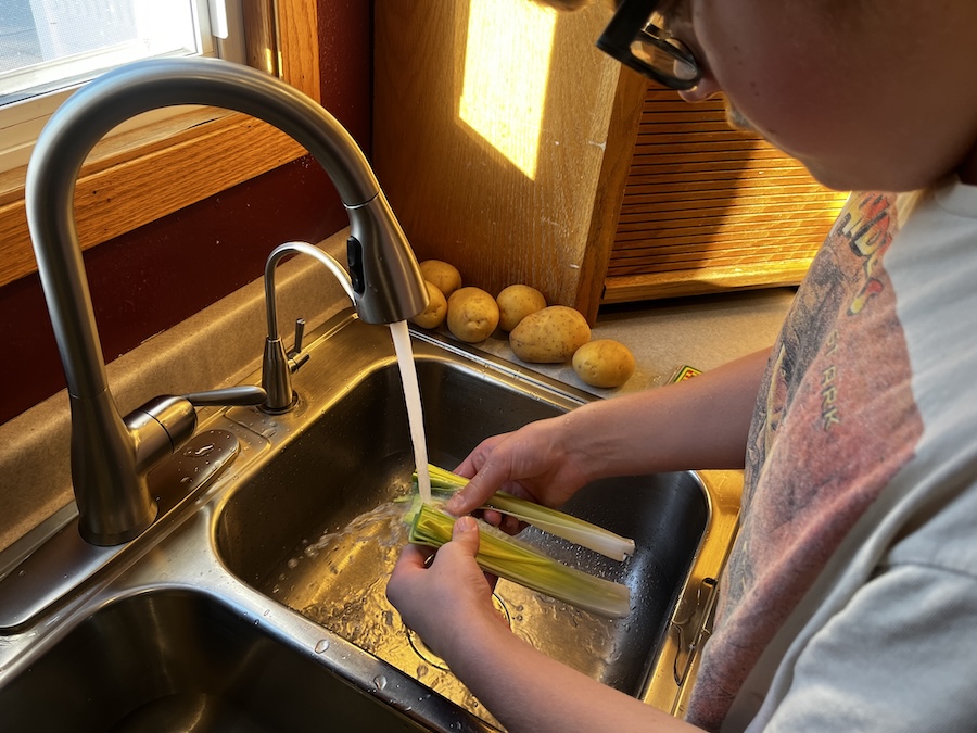 Cleaning the leeks.
