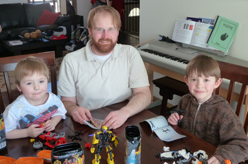 Daddy playing LEGO with Tennyson and Xander - building some HERO Factory 2.0 figures.