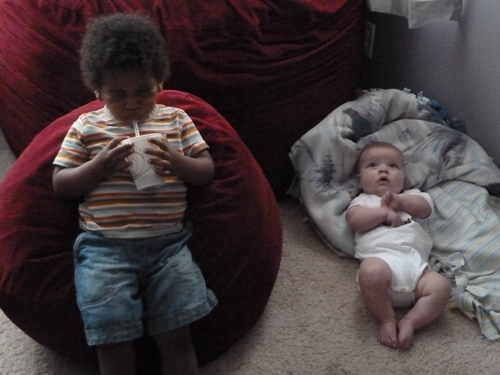 On Tuesday my friend Elliot from across the street came over to play while his big brother and mom and dad were at kindergarten orientation.