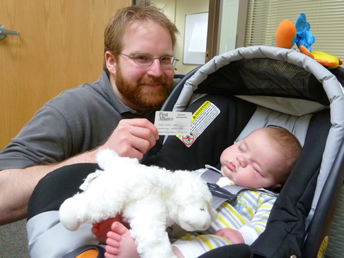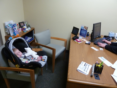 On Friday I went to the credit union to open a savings account with all the money from the betting pool on when I would be born (thanks Great-grandma Muriel for letting me keep all the loot). The lady at the credit union asked a lot of questions.
