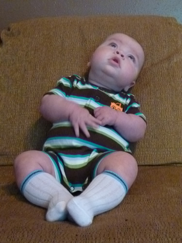 This week I turned four months old! We stayed home most of the week - Daddy and I didn't run any errands during the day. Mommy did some baking when she was home with me at night.