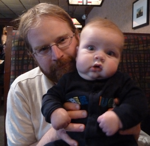 Mommy and Daddy were tired on Friday night, so we went out to eat. I mean, they went out to eat. I had a bottle before we left. There were a lot of babies in the restaurant. Babies must make lots of people tired.