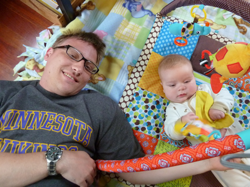 On Saturday night Mommy and Daddy played games with Kathy and Ben from down the street. I was naughty and fussed and cried and refused to go to sleep until way past my bedtime. I wanted to visit too!