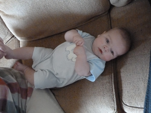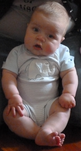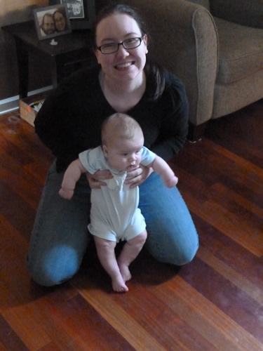 Here Mommy is helping me demonstrate how I can sort of stand up - as long as someone keeps me balanced.