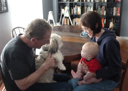All the visitors in one picture: Grandma Gail, Grandpa Kevin, Max, Abby - and me, of course.