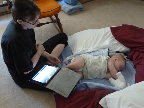 randma Gail keeping watch so none of the little puppies came and woke me up with a cold nose or a wet tongue.