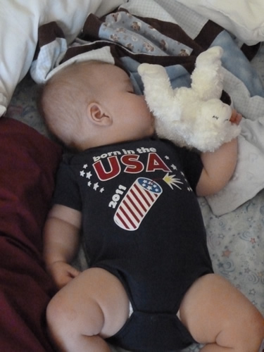 Auntie Kara took this picture after I went home for the night, but I told Dad I would put it in here anyway. I didn't get to see the fireworks at the lake, but that also means I didn't get any mosquito bites. Mommy and Daddy have been itchy since that night.