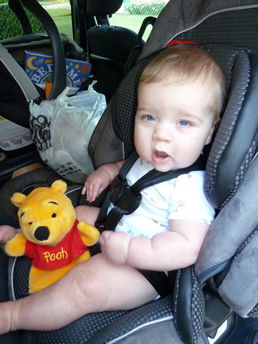 This week I rode in my new car seat for the first time. Mom and Dad had some trouble getting it into Moby (that's what they call the van, because it is a big, white whale), but it all worked fine and I wasn't squished into that infant carrier.