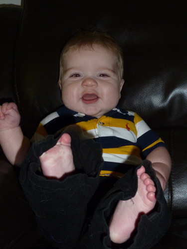 When we were in town on Wednesday, we went to visit Grandma Gail and Grandpa Kevin at their new place. I played on the floor and watched Max and Abby run around.