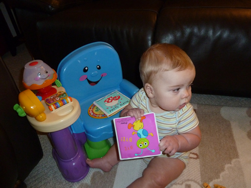 Back at Grandpa and Grandma's, I played on the floor and read some books, among other things.