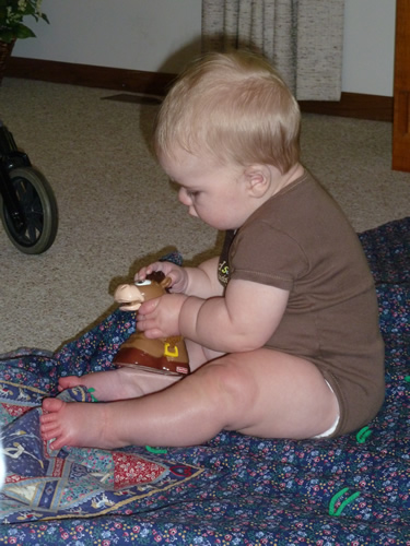 On Friday I was home with Mommy. Daddy went to work with Grandpa in the morning and then to his regular job in the afternoon, so I was home with Mommy all day. We went for a walk with Duke.