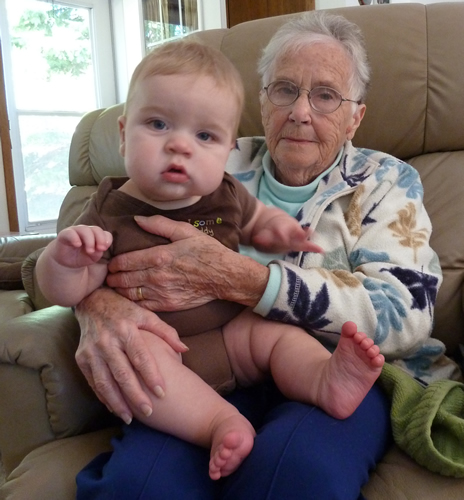 Me with Great-grandma Dorothy. Another picture that makes me look huge.