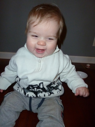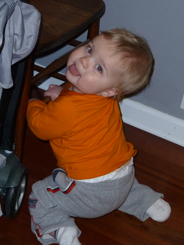 3. Not content with my knees, I pulled myself up so I was standing without help for the first time. Daddy tried to make a video of that, but I'm not ready to have that captured yet. I need to perfect my technique.