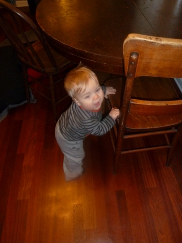 ...stood up using the chair (and fell down a few times, too)