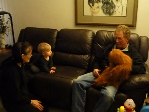 On Sunday Grandma Gail and Grandpa Kevin came over to see me. They brought Clyde along.