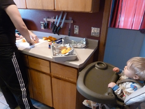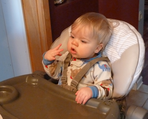 I ate real food every day this week, along with my baby food. I like bananas, apple sauce, apple-apricot sauce, squash, sweet potatoes, and my banana puffs. I'm not too fond of eggs, Daddy's oatmeal, or roasted tomatoes.
