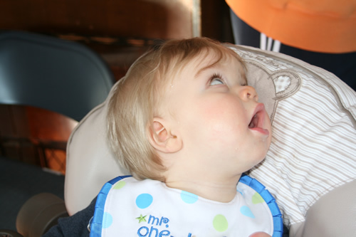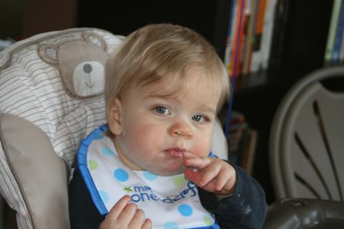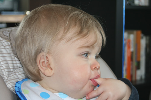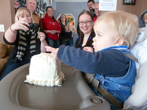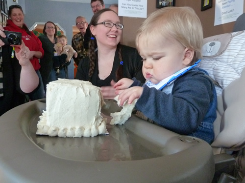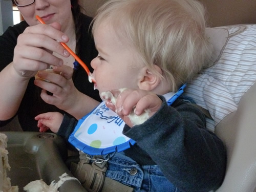 I don't think I like this.(Daddy told me to say that the cake was actually very good, and wanted me to remind everyone that I like formula, which tastes awful.)