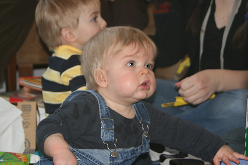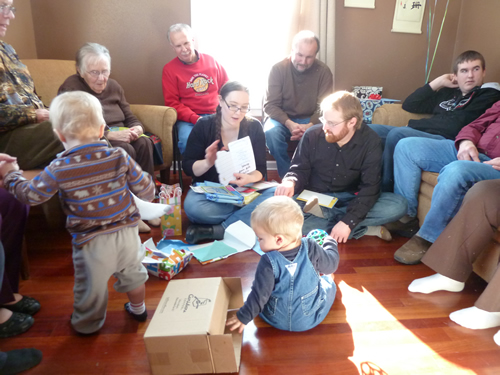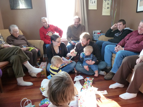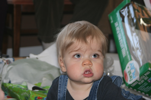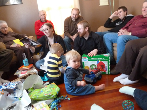 After the cake, it was time to open some presents. I prefer to play with stuff rather than open it, so I had Mom, Dad, and Isaac help me tear open my gifts.