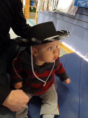 For my Birthday Adventure we went to a toy store. And Mom and Auntie Kara had me try on funny hats...