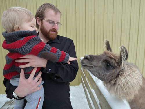 Henry: Daddy! The LLAMA IS SNIFFING MY HAND!