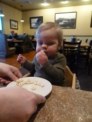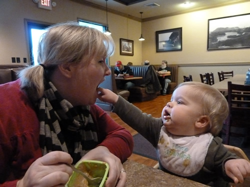 Auntie Kara fed me while the big people were waiting for their food to arrive.