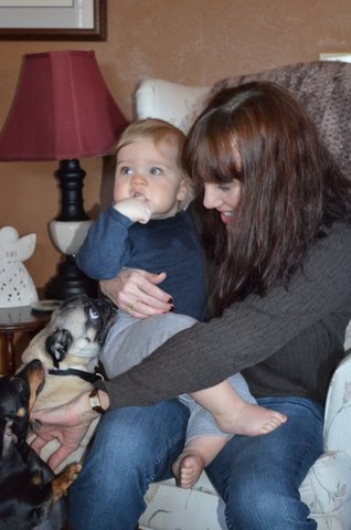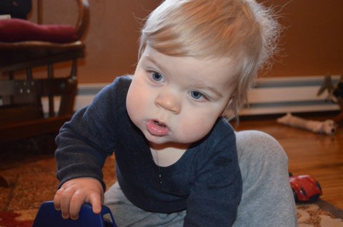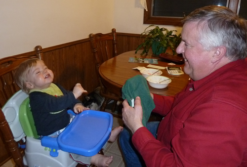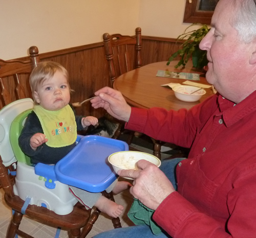 We had a big week. I spent Sunday, Monday, and Tuesday night at Grandpa Al and Grandma's Wynne's house. Mommy and Daddy traded off being there to help take care of me. Duke stayed the whole time - he didn't want to miss anything I might drop from my chair when I'm eating.