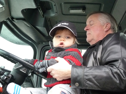 ...and on Tuesday we went to see Grandpa's truck! The chair in the truck is really high up - higher than sitting on Daddy's shoulders! And Grandpa used the air horn - it was kind of loud. I was a little nervous when Grandpa started the truck because it makes so much noise, but I wasn't scared.