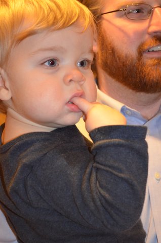 On Sunday we went to Michael's birthday party. He's eighteen now. I ate lunch with everyone and I had some of what they were having (and a little baby food). Mommy and Daddy are excited that the time when they won't have to drag little jars of food around is coming soon.