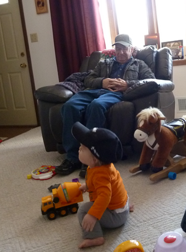 While I was at Grandma and Grandpa's, I had a lot of visitors. Grandma Gail came to seem me more than once, and both Great-grandma Darlene and Great-grandma Dorothy came to see me. And Janice and Jerry and David and Dan and Deb and Chris and Diane and Milton and...and I think that's all.