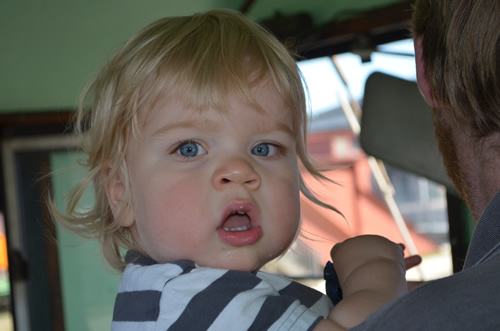 Later in the week we went with Grandma Wynne and Mommy and Auntie Kara to a museum. Before we left to go we had to get Grandpa's van so there would be enough room for all of us - and Grandpa surprised us by showing up right when we got there! So before we left I got to sit in Grandpa's truck!