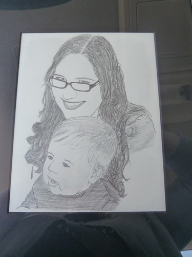 Daddy drew a picture of me and Mommy that we gave to Grandma Gail.