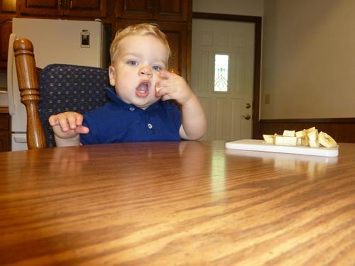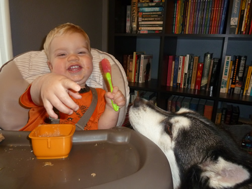 Duke likes the spoon too, since I seem to drop a lot of food on the floor when I use it.