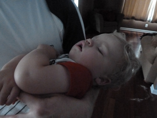 I was very tired when we got home, and I tried to fall asleep, I really did. But Daddy had to come in and rock me in his arms before I would go to sleep. Now Daddy says his arms and back ache from holding me for so long.